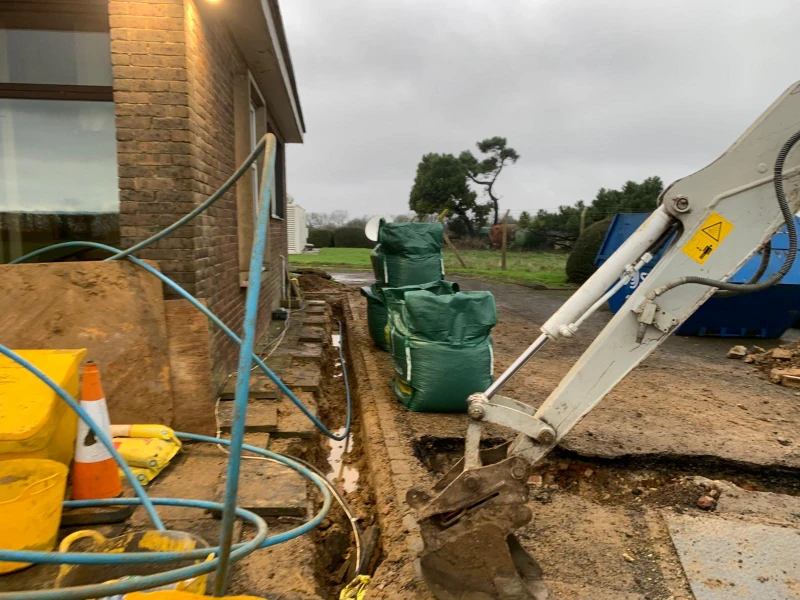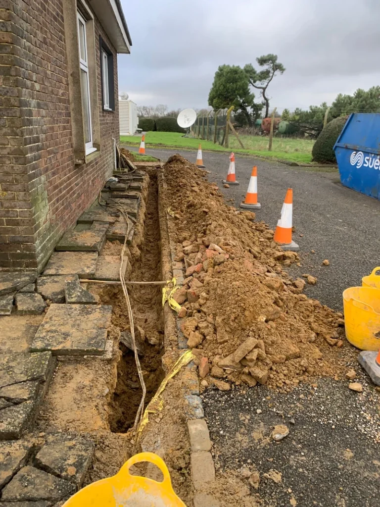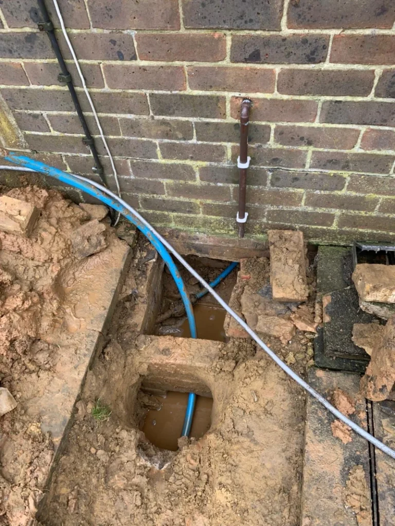 Removed existing water pipe. Install new water polypipe & reconnect to mains.